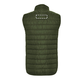 La doudoune 290 gr/m² sans manches est conçue pour offrir chaleur et légèreté. Elle peut être personnalisée et se décline en plusieurs coloris ainsi qu'en différentes tailles, allant du S au 3 XL. Ce modèle est équipé de deux poches avant avec fermeture éclair, d'une doublure intérieure contrastée et de liserés élastiques assortis au bas. Elle est conçue pour être coupe-vent et résistante à l'eau.