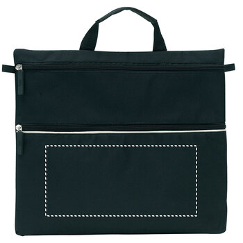 Sacoche publicitaire avec poche frontale et poche principale à fermeture éclair, ainsi qu'une poignée renforcée pour un transport facile. Un goodies personnalisé qui protègera les documents de vos collaborateurs et de vos clients.