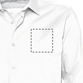 La chemise personnalisable stretch blanche à manches longues est confectionnée à partir d'un mélange de coton et d'élasthanne. Elle présente une coupe ajustée et un col à bouton unique. Les poignets sont équipés de deux boutons. Ce modèle pour homme est disponible dans une gamme de tailles allant du S au 5XL. Adaptée aux personnes qui portent régulièrement des chemises, elle peut être personnalisée avec un logo pour accroître la visibilité et la reconnaissance de votre marque.