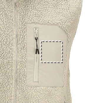 Le bodywarmer personnalisable sherpa mixte sans manches est conçu pour offrir chaleur et confort. Il est composé de 70 % de polyester recyclé et 30 % de polyester, avec une doublure polaire entièrement en polyester. Les empiècements en taslon sont fabriqués à 100 % en polyamide. Ce vêtement est doté d'une fermeture principale et de poches latérales équipées de zips inversés en nylon contrasté, ce qui lui confère un aspect moderne et fonctionnel. Une poche poitrine contrastée en taslon, également munie d'un zip inversé en nylon, ajoute une touche distinctive. Les tire-zips noirs avec détails réfléchissants améliorent la visibilité, tandis que les biais contrastés en taslon aux emmanchures et à la base du vêtement apportent une finition soignée. La coupe est conçue pour être confortable, avec un dos légèrement allongé pour un ajustement optimal. Ce produit peut être marqué avec le logo de votre entreprise et proposé à vos clients ou collaborateurs, leur offrant ainsi un vêtement pratique et de qualité pour les périodes fraîches.