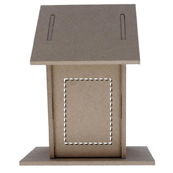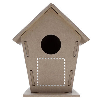 Le produit est un nichoir fabriqué en aggloméré de bois, destiné à être assemblé.