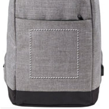 Sac à dos personnalisable gris chiné multi-poches. Ce modèle est conçu pour offrir diverses fonctionnalités pratiques à vos collaborateurs. Il peut accueillir un ordinateur portable jusqu'à 15 pouces grâce à un compartiment rembourré, ainsi qu'une tablette dans un espace dédié. Un compartiment dissimulé à l'arrière assure une fonction antivol, idéal pour ranger des documents personnels en toute sécurité. Le sac à dos est également équipé d'un port de chargement USB latéral, compatible avec les batteries externes. Veuillez noter que la batterie de secours et le câble de charge ne sont pas inclus. Ce sac à dos est adapté pour les équipes commerciales lors de leurs rendez-vous de prospection ou pour les employés en flexoffice ou télétravail, facilitant le transport de leur matériel informatique. Il est résistant à l'eau et dispose de bretelles et d'un dos matelassés et ajustables pour un confort accru. La personnalisation est possible sur la face avant, avec l'ajout de votre logo d'entreprise en sérigraphie une couleur ou en transfert numérique.