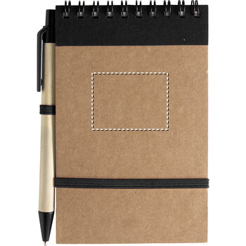 Le produit est un carnet publicitaire à spirale, fabriqué à partir de carton et de papier recyclé. Il contient environ 140 pages lignées. Ce carnet est accompagné d'un stylo bille recyclé avec une encre bleue. L'utilisat... Plus de détails
