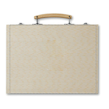La "malette personnalisable de coloriage et de peinture" est un ensemble de fournitures artistiques présenté dans un coffret en bois doté d'un système de fermeture à clip. Elle contient 66 éléments, comprenant : 12 feutres, 12 crayons de couleur pré-taillés, 12 crayons de cire, 12 pastels gras, 12 godets de peinture à l'eau, un taille-crayon, un crayon, un pinceau, une gomme, une règle de 15 cm et un bâton de colle. Ce kit offre tout le nécessaire pour des activités de coloriage ou de peinture occasionnelles. La mallette peut être personnalisée avec le logo de votre entreprise, ce qui en fait un outil promotionnel adapté pour les amateurs de dessin et de peinture, qu'ils soient clients, partenaires ou employés. Grâce à sa poignée intégrée, elle est facilement transportable, permettant une utilisation à tout moment. Ce produit est également approprié pour les écoles et les associations. Il est important de noter qu'il n'est pas adapté aux enfants de moins de 3 ans.