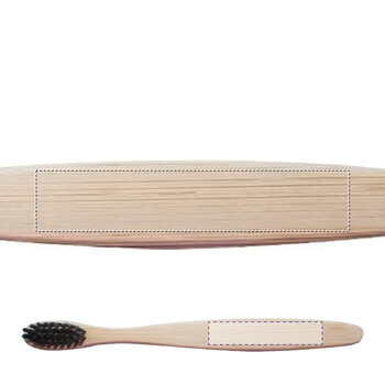 La "mini brosse à dent personnalisée en bambou" est conçue pour les enfants. Sa taille réduite convient aux bouches des plus jeunes. Elle est dotée d'un manche en bambou et de poils noirs. Ce produit est fourni dans un emballage en carton. Cette brosse à dents en bambou est adaptée pour les enfants des collaborateurs, des prospects ou des clients.