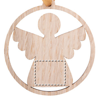 Un ange en bois personnalisable est proposé avec un ruban de couleur or, conçu pour être suspendu à un arbre de Noël. Ce produit permet de dessiner, colorier et inscrire des messages selon vos préférences, offrant ainsi la possibilité de créer un objet de Noël unique. Destiné à vos prospects et collaborateurs, cet ange peut être décoré par leurs soins et offert à leurs enfants pour décorer le sapin familial. Ce produit constitue une option de communication festive à offrir à vos collaborateurs et clients pendant la période de Noël. Le ruban est fourni séparément.