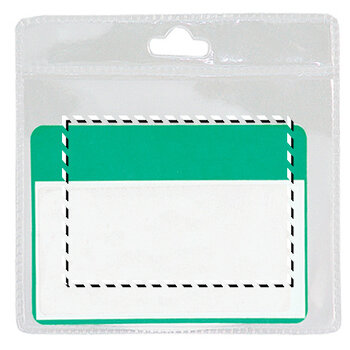 Badge en PVC perforé, format horizontal.