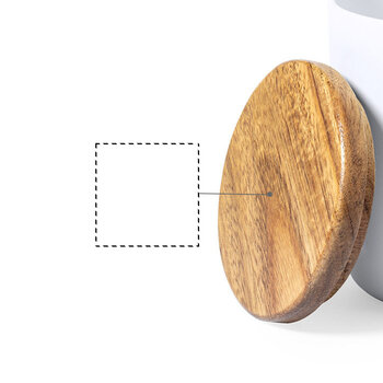 Le mug blanc personnalisable a une capacité de 350 ml. Elle est équipée d'un couvercle et d'une poignée en bois, apportant une touche naturelle. La possibilité de personnalisation permet d'y intégrer un élément significa... Plus de détails