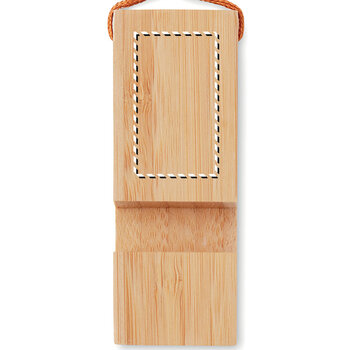 Porte-clés personnalisable avec support pour smartphone en bambou. Ce produit publicitaire peut être transporté facilement et à tout moment. Il est possible d'y apposer un logo, ce qui en fait un article à offrir à des collaborateurs ou des clients. Ce porte-clés est fonctionnel, car il permet de maintenir un téléphone à un angle de vue optimal, que ce soit dans les transports, au bureau, à une terrasse de café ou à domicile. Il est important de noter que le bambou, étant un matériau naturel, peut présenter de légères variations de couleur, de motifs et de dimensions selon les modèles.