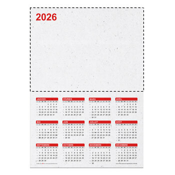 Calendrier ensemencé 2026 personnalisable de 12 mois. Ce calendrier ensemencé est fabriqué avec du papier graine de 300 gr/m². Ce calendrier donnera une dimension responsable à votre cadeau. Vos collaborateurs, vos clients et vos prospects adoreront la dimension écologique du produit. Ce calendrier doit être planté pour recycler ce dernier après son utilisation pour voir pousser de jolis coquelicots. Vous pouvez choisir la couleur de votre calendrier parmi celles proposées. Ce calendrier ensemencé promotionnel est disponible au format A3, A4 et A5. Ce calendrier est personnalisé et fabriqué en France.
