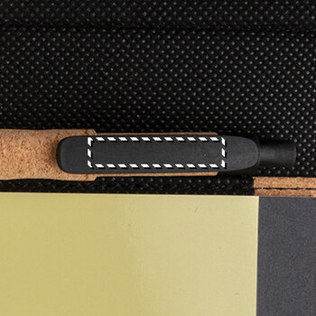 Ce conférencier personnalisable A4 est fabriqué en liège et contient 40 pages lignées en papier recyclé de 80 g/m², de couleur crème. Il se ferme à l'aide d'une bande élastique fine. Le conférencier est équipé de plusieurs poches : une grande poche, une poche pour téléphone et deux poches supplémentaires. Il comprend également quatre emplacements pour cartes, un porte-stylo et un stylo assorti en liège et paille de blé. L'association du liège, de l'intérieur noir foncé et des pages crème confère au produit un design sobre et élégant. Une fois personnalisé avec le logo de votre entreprise, ce conférencier peut être proposé à vos clients ou collègues. Le produit est livré individuellement dans une boîte cadeau en kraft.