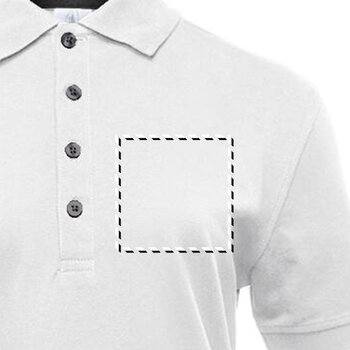 Le polo personnalisable de couleur blanche pour femme présente des boutons contrastés. Conçu en coton piqué avec un grammage de 210 g/m², il est équipé de quatre boutons contrastés et d'une bande de propreté assortie au ... Plus de détails