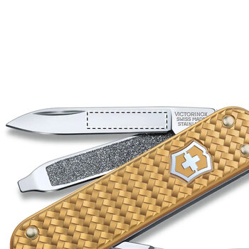Le Couteau Suisse Mini 5 Fonctions en Alox personnalisé Victorinox est un outil pratique et fonctionnel pour un usage quotidien. Doté de côtes en Alox durables avec un motif tissé, il est disponible en cinq couleurs contemporaines. Ce couteau suisse compact propose cinq fonctions essentielles : une petite lame, des ciseaux, une lime à ongles, un tournevis de 2,5 mm et un anneau. Il est conçu pour répondre à divers besoins, allant du bricolage à des tâches de coupe précises, ainsi qu'à des ajustements rapides de votre apparence. Ce Couteau Suisse Mini peut être personnalisé avec un logo ou un message, ce qui en fait un cadeau d'entreprise ou publicitaire approprié pour clients, collaborateurs ou partenaires. Choisissez la couleur qui vous convient pour une personnalisation supplémentaire. Le Couteau Suisse Mini 5 Fonctions en Alox Victorinox combine design moderne, fonctionnalité et élégance, offrant une solution polyvalente pour un usage quotidien.