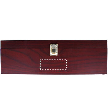 Coffret à vin en bois personnalisable conçu pour accueillir une bouteille et ses accessoires, destiné à vos collaborateurs et clients. Ce set promotionnel comprend les éléments essentiels pour apprécier votre vin préféré. Il inclut un bouchon, un bec verseur, un collier anti-goutte et un tire-bouchon, permettant de conserver vos bouteilles de vin rouge, blanc ou rosé dans des conditions optimales. Ce coffret constitue un cadeau d'affaires approprié pour les partenaires professionnels intéressés par l'œnologie. À noter que la bouteille de vin n'est pas fournie avec le coffret.