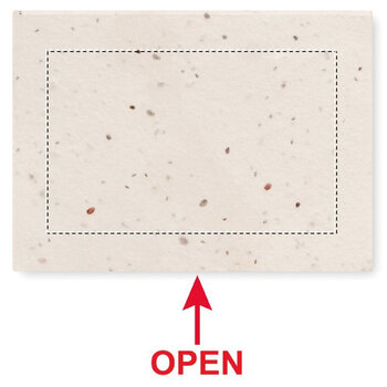 Bloc-notes publicitaire composé de 50 feuilles fabriquées à partir de fibres d'herbe, avec une couverture souple intégrant des graines de fleurs sauvages de prairie. Une fois utilisé, la couverture peut être plantée pour permettre la croissance de fleurs de prairie. Ce bloc-notes, à la fois original et respectueux de l'environnement, constitue un cadeau approprié pour les collaborateurs, clients et prospects intéressés par le jardinage. Personnalisable, ce bloc-notes promotionnel éco-responsable peut renforcer votre communication en véhiculant des valeurs écologiques et responsables.