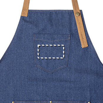 Tablier de cuisine personnalisable en tissu Denim. Ce tablier est fabriqué à partir d'un matériau robuste et renforcé, garantissant une bonne durabilité. Il présente une coupe qui s'étend sous le genou et est équipé d'une sangle de cou ajustable pour un ajustement confortable. Le tablier comprend plusieurs poches fonctionnelles pour le rangement des ustensiles. Il combine à la fois style et fonctionnalité. Ce produit peut être personnalisé avec les couleurs et le logo de votre entreprise. Composé à 100 % de coton.