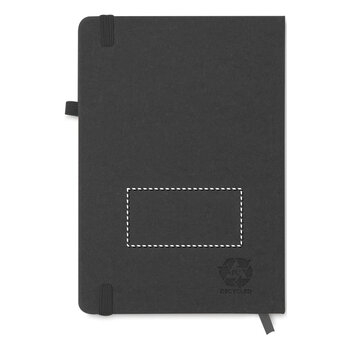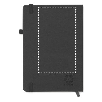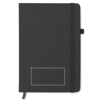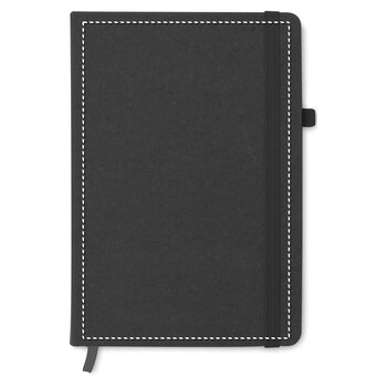 Le produit est un carnet personnalisable au format A5, doté d'une couverture en PU recyclé. Il contient 80 pages lignées et se ferme à l'aide d'un élastique intégré. Un ruban marque-page est inclus pour faciliter le suivi de vos notes, et une bande est prévue pour maintenir un stylo. Ce carnet constitue un choix classique et sobre pour un cadeau d'entreprise, adapté aussi bien aux collaborateurs qu'aux clients. Il est possible de personnaliser la couverture recyclée en y ajoutant un logo, un slogan ou une phrase de votre choix, permettant ainsi de promouvoir votre marque.