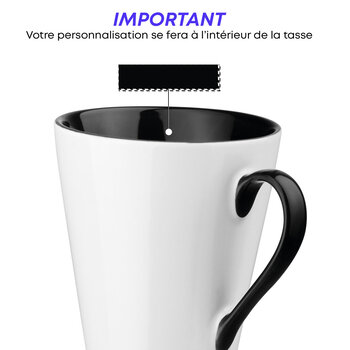Le mug personnalisable a une capacité de 320 ml et est conçu en céramique. Il présente une anse qui correspond à la couleur de l'intérieur. La personnalisation est réalisée par cuisson, ce qui assure une bonne durabilité... Plus de détails