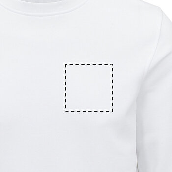 Le sweat-shirt personnalisable blanc est composé de 80 % de coton biologique et de 20 % de polyester recyclé. Il présente des manches montées, ainsi qu'un col et un bas du corps dotés de bords en côte 2x2. À l'intérieur du col, une bande de propreté et une demi-lune en jersey sont présentes. Ce vêtement promotionnel est proposé dans une gamme de tailles allant du XS au 4XL. Il peut être personnalisé avec un logo ou un message, ce qui en fait un outil de visibilité pour les entreprises, que ce soit pour offrir à des clients ou à des employés, à porter sur le lieu de travail ou lors d'événements.