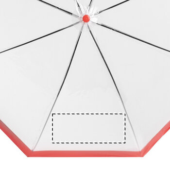 Le parapluie personnalisable est conçu pour être utilisé par temps pluvieux. Sa structure en métal, comprenant les bâtons et les rayons, offre une résistance fiable. La poignée est ergonomique, ce qui permet une prise en main confortable et facilite son utilisation quotidienne. Le parapluie est équipé d'un tissu en POE transparent, qui protège de la pluie tout en maintenant une bonne visibilité. Une bordure colorée est présente pour un aspect moderne. L'ouverture et la fermeture se font manuellement à l'aide d'un bouton. Ce parapluie peut être marqué avec le logo de votre entreprise, ce qui en fait un choix pertinent pour offrir à vos clients ou collaborateurs, leur permettant de rester au sec avec élégance.
