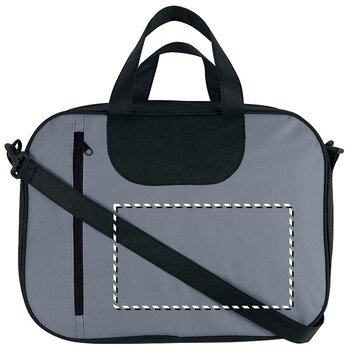 Sacoche porte-documents en non tissé, conçue pour être légère et durable. Ce modèle offre un bon rapport qualité/prix. Elle peut être utilisée telle quelle ou personnalisée selon les besoins. Équipée d'une bandoulière amovible et réglable de 24 à 58 cm, elle propose un espace de rangement de 10 litres et dispose d'une poche zippée à l'avant. Cette sacoche est adaptée pour des événements tels que des présentations d'entreprise, des congrès, des séminaires ou des soirées de lancement. L'impression publicitaire est réalisée en France. Dimensions : 40 x 28 x 7 cm.