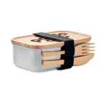 Boîte à lunch personnalisable 600 ml en acier avec couverts en bambou - Savane | pandacolach - 2