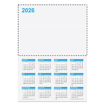 Imprimez votre logo sur le recto de ce calendrier publicitaire pour visualiser les dates et planifier rapidement vos événements en 2026. Choisissez votre calendrier promotionnel en 2 types de papier à savoir :