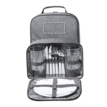 Le sac à dos pique-nique publicitaire 'Glapuk' est conçu pour accompagner vos activités en extérieur. Il s'inscrit dans la gamme Nature et est fabriqué à partir de rPET 600D, un matériau en plastique recyclé, contribuant ainsi à la réduction des déchets plastiques tout en assurant une bonne résistance. Le sac à dos pique-nique personnalisé 'Glapuk' convient pour un repas en plein air à deux. Il dispose d'une poche séparée pour sécuriser vos effets personnels et inclut un ensemble de couverts pour deux personnes, comprenant couteaux, fourchettes, cuillères, verres, assiettes et serviettes. Son compartiment isotherme en PEVA est conçu pour garder vos aliments frais. Le confort est assuré par des bretelles et un dos rembourrés, ainsi qu'une poignée de transport ergonomique. Ce sac à dos met en avant son engagement écologique avec le logo rPET sur son étiquette. Il est possible d'y ajouter votre logo pour offrir à vos clients un accessoire fonctionnel et respectueux de l'environnement pour leurs sorties.