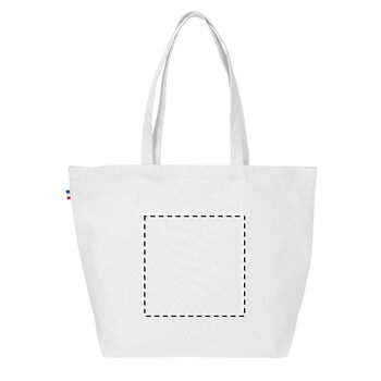 Le sac de plage personnalisable est confectionné en coton recyclé à 100 %, certifié par le Global Recycled Standard (GRS). Il est tissé en France. Ses dimensions de 50x38 cm et son soufflet de fond permettent de transporter des objets volumineux. Ce sac cabas publicitaire, fabriqué en France, convient aux campagnes promotionnelles, combinant capacité, solidité et utilisation de matériaux recyclés.