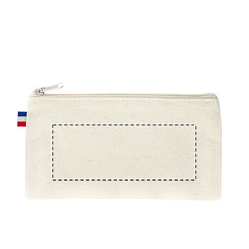 La trousse personnalisable est conçue en coton biologique à 100 %, certifié selon le standard GOTS (Global Organic Textile Standard). Elle est tissée en France. Ses dimensions sont de 12x22 cm, ce qui la rend adaptée pour le rangement d'accessoires quotidiens. Ce produit est proposé en quatre couleurs et est fabriqué en France. Il convient aux campagnes promotionnelles, combinant fonctionnalité et engagement envers des produits certifiés biologiques.