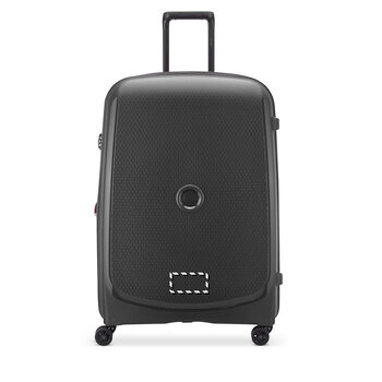 Valise trolley Delsey Paris®, modèle Belmont Plus. Ce modèle est équipé d'une fermeture à combinaison TSA, offrant une sécurité renforcée tout en permettant aux douaniers d'accéder facilement au contenu grâce à une clé spéciale. Le zip SECURITECH ajoute une protection supplémentaire. Les roues à double densité sont conçues pour un déplacement fluide. L'intérieur présente un revêtement doux au toucher, semblable à celui de la peau de pêche, pour un confort optimal lors de l'utilisation.