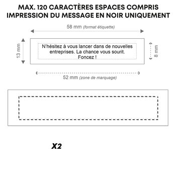 Le "Petit coffret" est un ensemble personnalisable qui contient deux fortune cookies fabriqués en France. Ce produit peut être utilisé comme cadeau d'entreprise, lors de réceptions, en tant que présent pour les invités ou pour les vœux de fin d'année. Il sert de support de communication culinaire. Les fortune cookies sont réalisés en France selon une recette simple, avec des ingrédients de qualité, sans conservateurs ni huile de palme. Chaque biscuit est conditionné dans un emballage individuel qui garantit sa fraîcheur pendant plusieurs mois. Par défaut, cet emballage est transparent et sans marquage, mais il est possible de choisir parmi plusieurs couleurs : argenté, transparent, rouge, vert, bleu, rose, doré et gris perle. Pour les commandes de 300 coffrets ou plus, différentes options de personnalisation sont disponibles. La boîte peut être personnalisée avec une impression en quadrichromie sur les deux faces. Les biscuits contiennent un assortiment aléatoire de citations, maximes, pensées et prédictions positives. Il est également possible de personnaliser le message à l'intérieur des biscuits, qui doit comporter un maximum de 120 caractères, espaces compris. L'impression du message est réalisée en noir sur le recto, utilisant du papier et de l'encre alimentaires. Pour des demandes spécifiques, un devis peut être fourni sur demande. La date limite d'utilisation optimale (DLUO) de ce produit est de six mois.