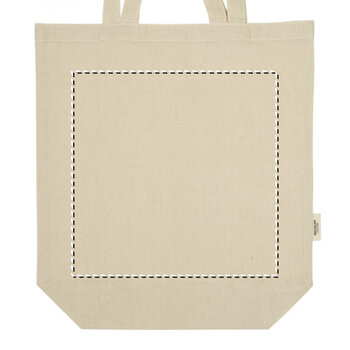 Ce sac shopping est fabriqué à partir de 80% de coton recyclé et 20% de polyester recyclé. à la fois pratique et léger, conçu pour répondre à tous vos besoins du quotidien. Fabriqué avec un grammage de 140 g/m², il offre une grande capacité de rangement grâce à sa forme T bottom, idéale pour transporter courses, documents ou effets personnels. Ses doubles anses assurent un confort de transport optimal, que ce soit à la main ou à l’épaule. Personnalisable avec votre logo ou message, il devient un excellent support publicitaire, parfait pour accroître la visibilité de votre marque. Offrez un sac personnalisé, élégant et fonctionnel, qui accompagnera vos clients et collaborateurs dans leur quotidien tout en valorisant votre image de marque !