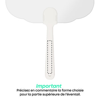 Cet éventail personnalisable est un accessoire à la fois pratique et tendance. Fabriqué à partir de papier stratifié, cet éventail vous permet de bénéficier d'une source de fraîcheur à tout moment de la journée. Il a surtout pour particularité d'être entièrement personnalisable sur sa face avant et sa face arrière, de quoi laissez libre cours à votre créativité. De plus, vous avez 6 formes au choix, à savoir une forme de maison, de t-shirt, de coeur, de nuage, ovale et carré. Que ce soit lors de mariages, de fêtes estivales, de concerts en plein air ou d'événements promotionnels, cet éventail publicitaire de la sera l'accessoire parfait pour garder votre public au frais. Profitez d'un accessoire personnalisé qui saura attirer l'attention et mettre en valeur votre marque.