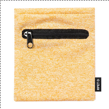Ce bracelet personnalisable avec éponge en polyester rPET souple est conçu pour combiner praticité et visibilité. Il intègre une poche zippée noire discrète, permettant de transporter facilement de petits objets comme de... Plus de détails