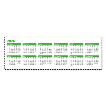 Calendrier personnalisé format carte de visite à la taille 8,5 x 5,4 cm (format ouvert 17 x 5,4 cm). Personnalisez avec votre logo ou votre message publicitaire ce calendrier et distribuez ce cadeau d'affaires à vos clients et prospects. Combinez les avantages de la carte de visite et du calendrier pour une communication avec un fort impact qui reste dans les portefeuilles toute l'année. Offrez-vous une campagne publicitaire à faible coût avec les 2 indispensables de l'objet promotionnel, la carte de visite et le calendrier.