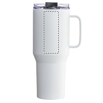 Découvrez notre mug isotherme de 1200 ml, un concentré de technologie et de design durable, conçu pour accompagner vos longues journées de soif avec style. Fabriqué en acier inoxydable recyclé et recouvert d'une poudre résistante, ce mug imposant se distingue par son isolation sous vide à double paroi, renforcée par un revêtement en cuivre, qui maintient vos boissons froides jusqu'à 32 heures et chaudes pendant jusqu'à 9 heures. Idéal pour les rafraîchissements estivaux, il offre une grande ouverture facilitant l'ajout de glaçons, lesquels restent congelés pendant jusqu'à 48 heures grâce à l'excellente isolation du mug. Son couvercle enfichable multifonction, doté d'une ouverture refermable pour la paille et d'une ouverture rabattable, garantit une étanchéité optimale tout en assurant une utilisation pratique, que ce soit à la maison, au bureau ou en déplacement. De plus, la poignée intégrée renforce le confort d'utilisation et le transport de ce mug, qui allie performance thermique, robustesse et design moderne. Un choix incontournable pour vos campagnes promotionnelles, mettant en avant votre engagement envers des matériaux recyclés et une technologie de pointe.