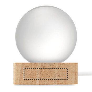 Lampe LED personnalisable boule en verre et bois d’hévéa – Lumiboule | pandacolach - 1