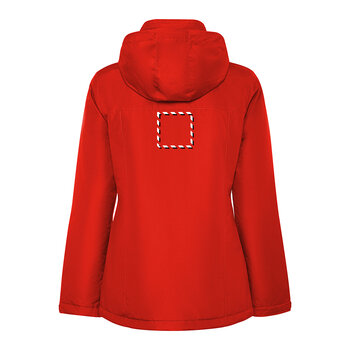 Cette veste parka personnalisable matelassée pour femme est tissée en polyester recyclé pour offrir une structure robuste et agréable à porter, tandis que le matelassage apporte un confort adapté aux journées froides. Le col montant renferme une capuche repliée et amovible, fixée par velcro pour une utilisation modulable selon les conditions. La fermeture zippée centrale est protégée par un rabat assorti, contribuant à une meilleure protection contre les intempéries. Les poches latérales zippées avec rabat fixe sont pratiques pour garder les effets personnels en sécurité, complétées par une poche intérieure fermée par velcro. Les poignets réglables avec boucle velcro permettent un ajustement simple et rapide. Cette parka personnalisée imperméable constitue une solution advertising fonctionnelle, adaptée aux besoins quotidiens comme aux projets de communication visuelle.