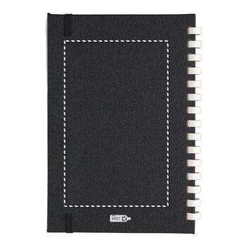 Ce carnet A5 personnalisable en rPET avec couverture rigide constitue un support pratique pour structurer des notes dans un cadre professionnel ou événementiel. Sa spirale composée de quinze anneaux en carton blanc offre... Plus de détails