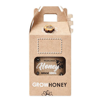 Découvrez le pot de miel personnalisable, une attention délicieuse et unique pour vos initiatives B to B. Ce pot renferme 50 g de miel de fleurs sauvages, reconnu pour sa douceur et son goût naturel. Il est présenté dans un pot en bois, offrant un aspect authentique et soigné, parfait pour mettre en valeur vos cadeaux d'entreprise, vos actions de fidélisation ou vos envois aux clients. Son format compact facilite la distribution tout en garantissant une expérience produit de qualité. En plus du miel, le pot contient des graines de fleurs d'abeilles. Celles-ci peuvent être semées dans un jardin, une jardinière ou un bac, prolongeant ainsi l'expérience au-delà de la dégustation. Cette combinaison établit un lien simple et ludique entre le produit et son utilisation. Le tout est livré dans une boîte en papier kraft, prête à être offerte. Fabriqué au sein de l'Union européenne, ce pot de miel s'intègre parfaitement dans des coffrets cadeaux, des campagnes promotionnelles ou des événements, alliant plaisir, originalité et visibilité de marque.