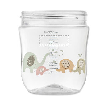 Découvrez notre gourde en Tritan personnalisée pour les enfants, spécialement conçue pour les tout-petits. Avec une capacité de 250 ml et des dimensions compactes de Ø8 x 12 cm, elle s'adapte parfaitement aux petites mains et aux besoins des jeunes enfants. Équipée d'un couvercle protecteur et d'une paille intégrée, cette gourde assure une utilisation pratique et hygiénique. Les deux poignées latérales facilitent la prise en main et soutiennent l'apprentissage de l'autonomie chez les enfants. Cette gourde personnalisable constitue un excellent support publicitaire, permettant d'ajouter votre logo ou visuel. À la fois robuste et fonctionnelle, elle allie esthétique et praticité, faisant d'elle un objet promotionnel prisé par les familles. Offrez un produit utile et de qualité qui met en valeur votre marque tout en accompagnant les moments de découverte et de plaisir des enfants.