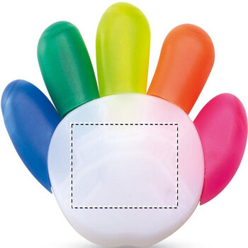 Surligneur promotionnel disponible en cinq teintes : bleu, vert, jaune, orange et rose. Ce surligneur, qui peut être personnalisé, se distingue par son design unique en forme de main. Grâce à sa large surface de personna... Plus de détails