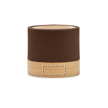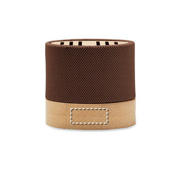 Découvrez une enceinte sans fil au design naturel, conçue en rPET et en bambou. Compacte et raffinée, elle offre une autonomie d'écoute de 3 heures, parfaite pour vos événements professionnels, réunions ou moments de détente. Son format pratique facilite le transport et son utilisation est intuitive. Compatible avec tous vos appareils, cette enceinte se connecte rapidement et diffuse un son clair et agréable. Son revêtement en bambou et rPET lui donne un style moderne et chaleureux, idéal pour y apposer votre logo. C'est un cadeau promotionnel parfait pour mettre en avant votre marque tout en offrant un objet à la fois utile et tendance. Dimensions : Ø6,1 x 5,3 cm.