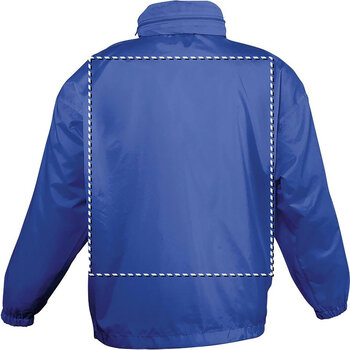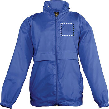Veste coupe-vent personnalisée pour enfants, dotée d'œillets d'aération et d'un bas ajustable avec cordon sécurisé. Elle s'ouvre par une fermeture éclair et possède une capuche intégrée dans le col. Deux poches extérieures zippées sont présentes, ainsi qu'un système de rangement 'in bag' avec des élastiques qui se fixent autour de la taille. Ce coupe-vent sur mesure constitue un cadeau pratique qui mettra en avant votre logo ou message promotionnel. Pour une personnalisation distincte sur chaque article (prénom, surnom, numéro, etc.), optez pour l'option de transfert nominatif.