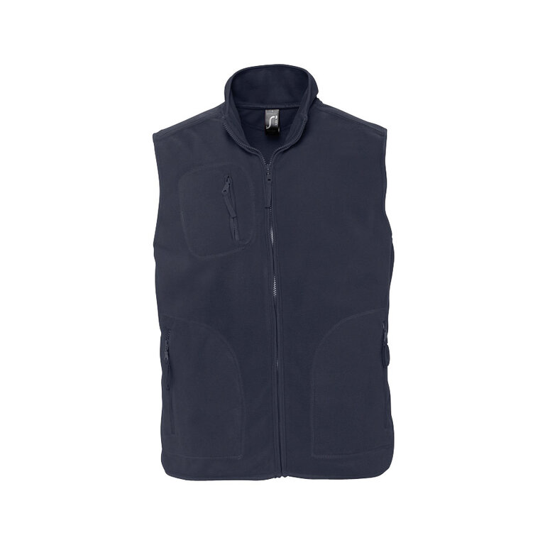 Bodywarmer mixte avec traitement anti-bouloche. Col avec bande de propreté et doublure. Coupe droite avec fermeture éclair. Dispose de trois poches zippées. Grammage de 320 gr/m². Possibilité de marquage en gravure laser sur la poitrine ou le dos pour une personnalisation élégante, discrète et durable. Cette polaire publicitaire constitue un excellent cadeau d'entreprise et un objet promotionnel parfait pour offrir à vos clients et collaborateurs une tenue qui reflète votre image. Idéale pour laisser une impression mémorable ! Disponible en tailles 4XL et 5XL en noir et marine : n'hésitez pas à nous contacter.